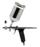Iwata HP-TH2 Gravity Feed Dual Action Trigger Airbrush is your bridge between an airbrush and mini spray gun in both capability and performance. The TH2's unique H6 head system easily atomizes a wide variety of spray materials including candy blends and metallic paints and the built-in micro air control (MAC) valve enables dynamic, incremental control of airflow without needing to adjust your compressor. Round pattern and fan pattern air caps give you options for covering large areas quickly and when combined with the MAC valve, produce an unmatched range of spray patterns and effects.
