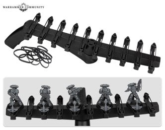 360-degree rotating Spray Stick, with an enhanced ergonomical designHolds up to 10x models across a range of base sizes from 25mm - 65mmIncludes 20x rubber bands for holding miniatures