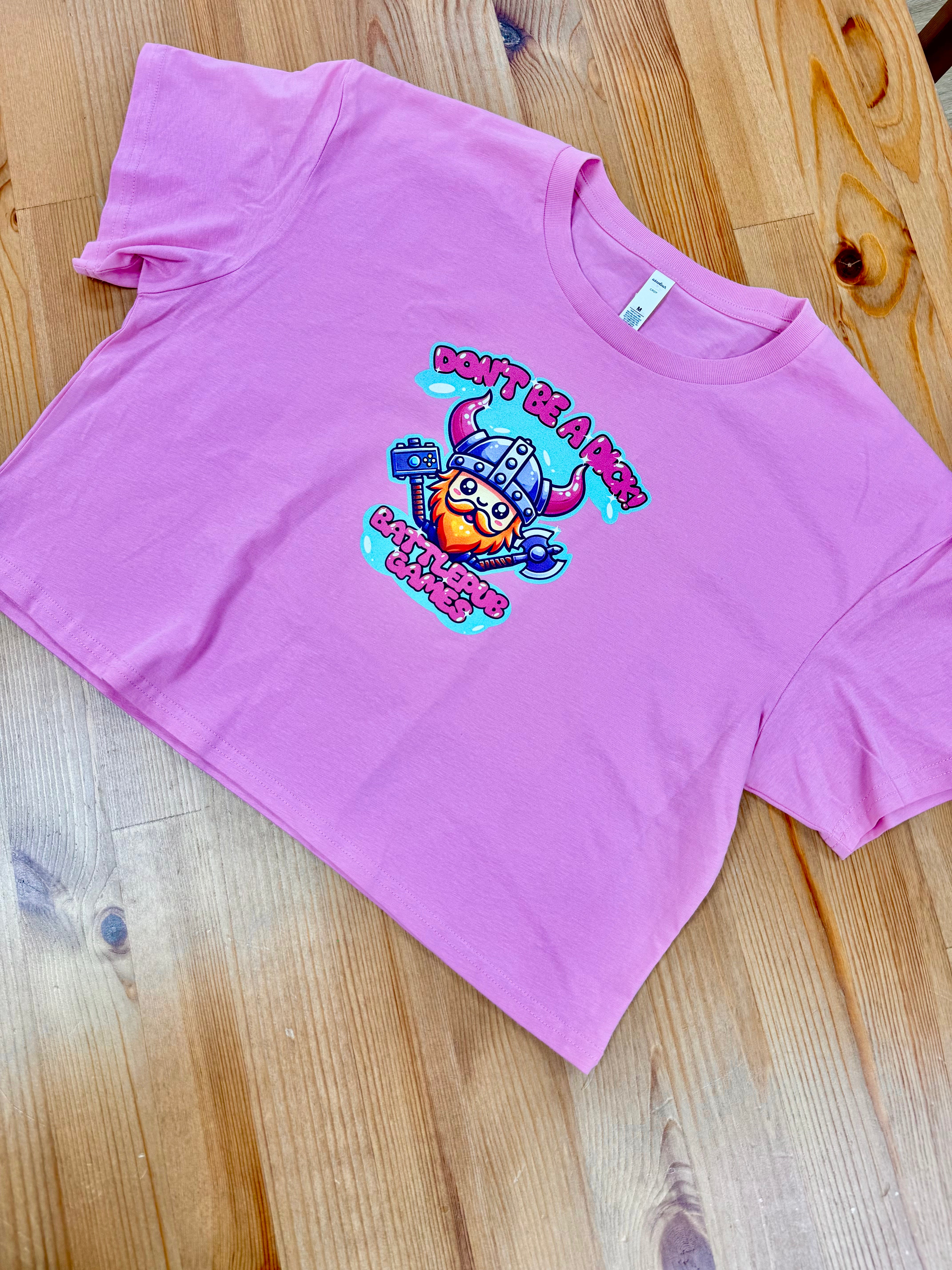 Show your enemies that you're hard and soft by reminding them to not be a dick in your favorite game store. In Crop Top Form.