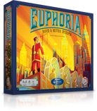 In Euphoria, you lead a team of workers (dice) and recruits (cards) to claim ownership of the dystopian world. You will generate commodities, dig tunnels to infiltrate opposing areas, construct markets, collect artifacts, strengthen allegiances, and fulfill secret agendas.