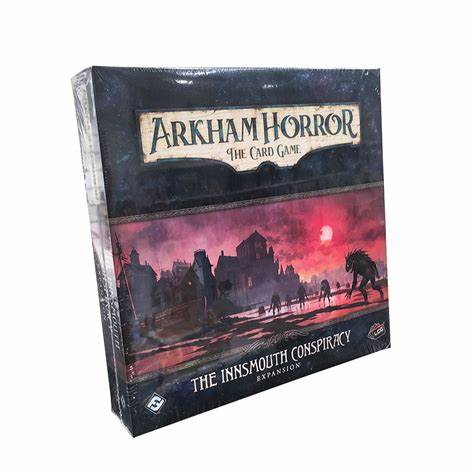 The Innsmouth Conspiracy, the sixth deluxe expansion for Arkham Horror: The Card Game, invites you to take your first steps in a twisting, time-jumping tale, starting with the campaign’s first two scenarios included in this expansion. From the heart of Innsmouth itself to the torturous coastline and beyond, these scenarios tee up an adventure that will continue to unfold across the subsequent six Mythos Packs. Far from including just two new scenarios, however, The Innsmouth Conspiracy brings five new investigators to the table with an undersea trove of player cards to support new types of decks—along with new mechanics for players to sink their teeth into, including keys, flood tokens, bless tokens, and curse tokens!