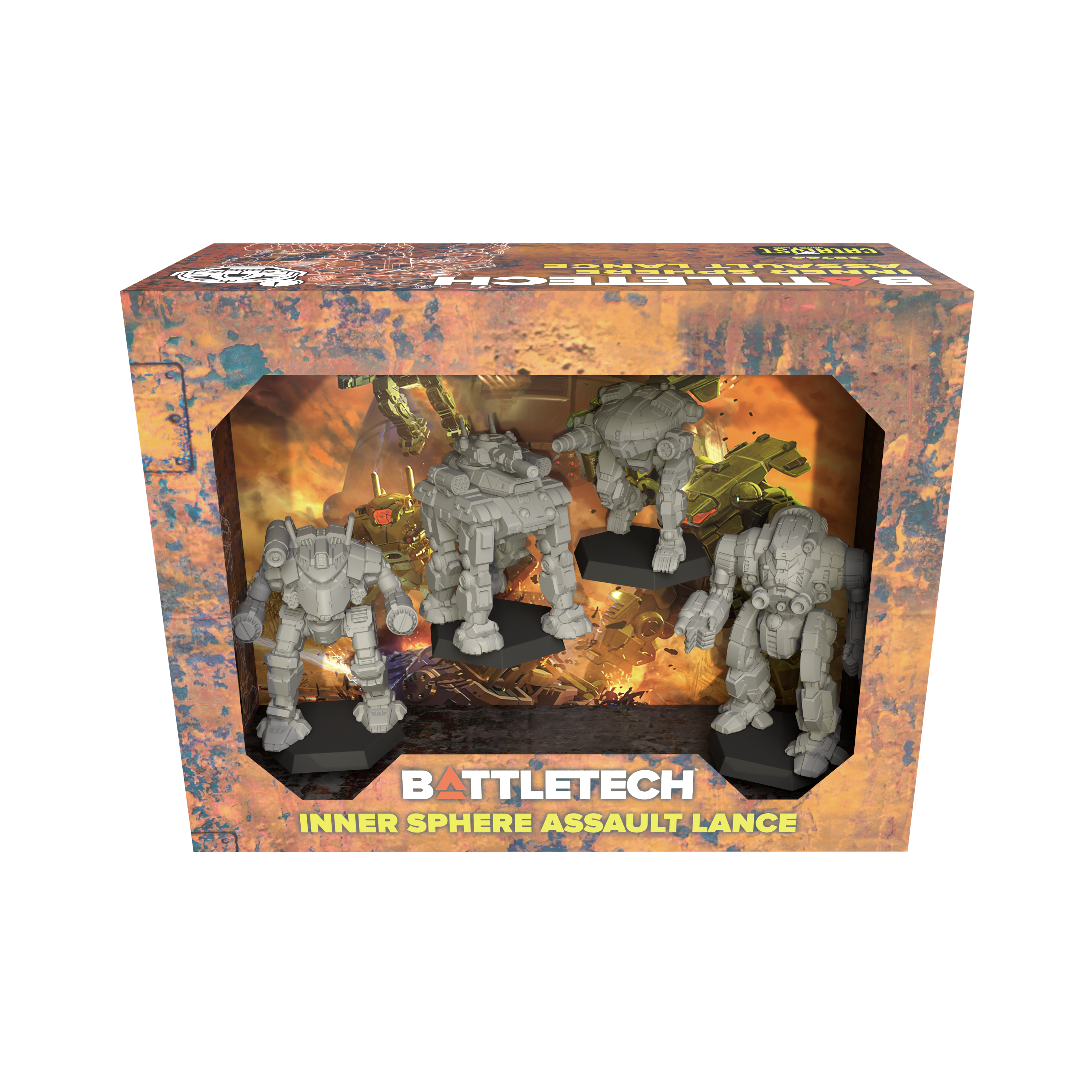 Our high-quality, affordable, read-to-play plastic miniatures ForcePacks are the heart and soul of BattleTech. Each re-imagined miniature retains the core of each 'Mech's identity grounded in the original artist expression and lore we all love, carefully updated with modern aesthetics. From Inner Sphere, choices are - Assault Lance, Battle Armor, Heavy Recon, Pursuit Lance, Recon Lance, and Security Lance. IS Assault Lance - Pillager, Goliath, Shogun, and Hopelite. IS Battle Armor - 4 squads of battle armor. IS Heavy Recon - Charger, Ostroc, Merlin, and Assassin. IS Pursuit Lance - Dervish, Cicada, Clint, and Hermes II. IS Recon Lance - Firestarter, Ostscout, Spector, and Javelin. IS Security Lance - JagerMech, Scorpion, Vulcan, and Whitworth