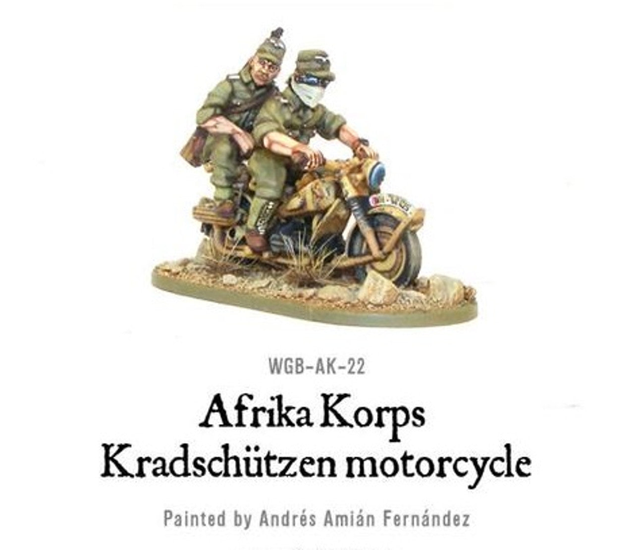 Key to the campaign waged in the Western Desert was mobility in order to cross the vast sandy deserts. As a result both sides relied heavily on tanks and transports. Amongst these were the BMW 75 and Zundapp motorcycles utilised by the Deutsche Afrika Korps and adding extra speed and manoeuvrability to your Afrika Korps force. The riders are separate from the motorcycle so you can easily mix and match as you prefer. For instance, you could add the pillion rider to the back of the Motorcycle and sidecar combination. These models also utilise our Figure Head system so you have choose which heads to build them with as well as having freedom of positioning. Pack contains 1 metal motorbike with 1 metal rider and 1 metal pillion. Note: This product is supplied unassembled and unpainted. Glue and paints not included.