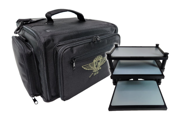 The PACK 160 is an ideal bag for any type of skirmish game, such as Kill Team, Blood Bowl, Infinity and similar size games. The P.A.C.K. (Personal Army Combat Kit) 160 can fit 7.5 inches (191 mm) of Battle Foam Small (BFS) size foam trays (11.5W x 7.75L) foam. Its rugged black, Ballistic Nylon exterior protects a hard plastic interior built for strength and durability. The P.A.C.K. 160 features three extended pockets for convenient storage. Its design includes four ribbed feet at the base of the bag to provide a solid base when the bag is resting on the floor or table. The base of the bag also features a dual strap to equip soft play mates. It was also designed for airport travel and meets all FAA regulations for carry-on luggage.