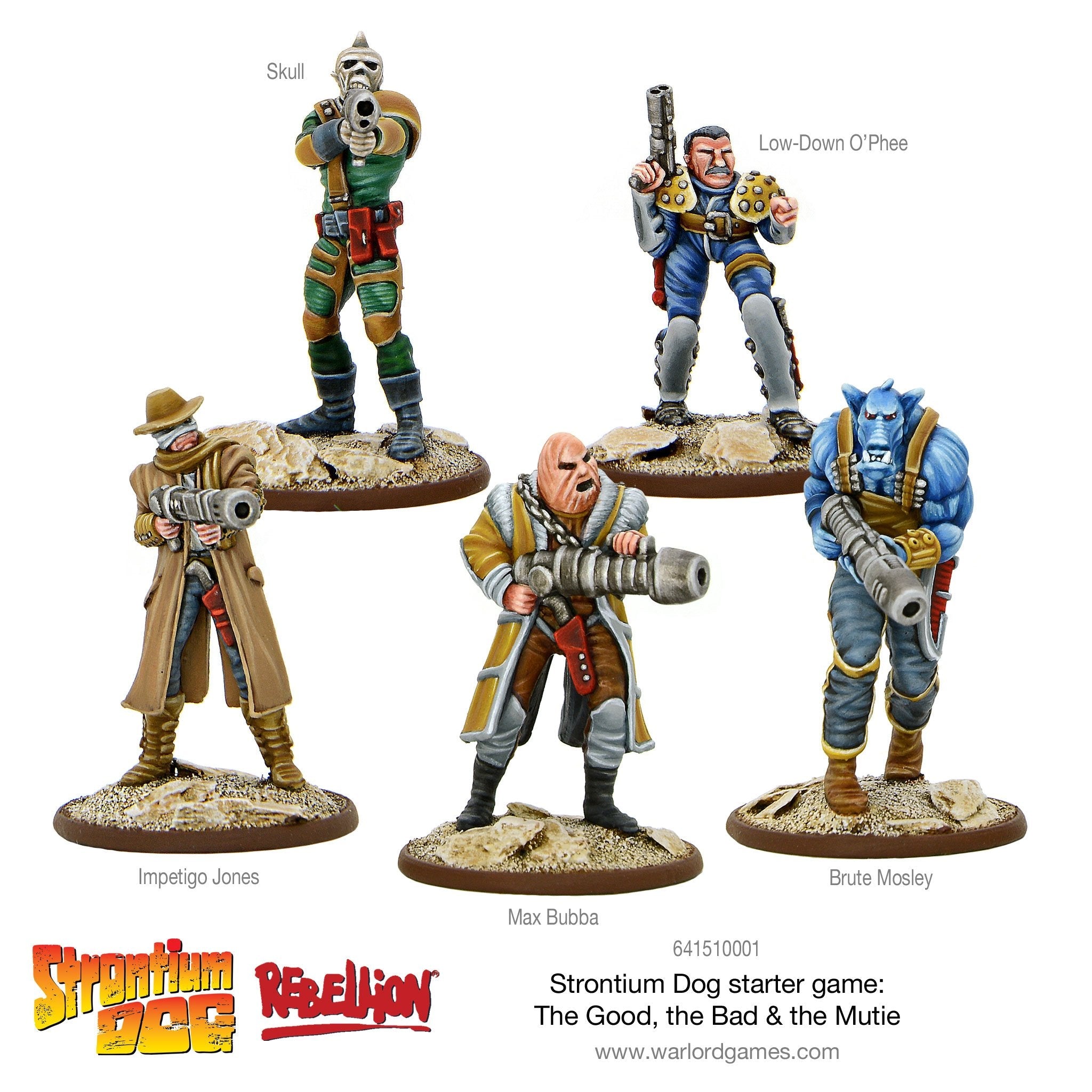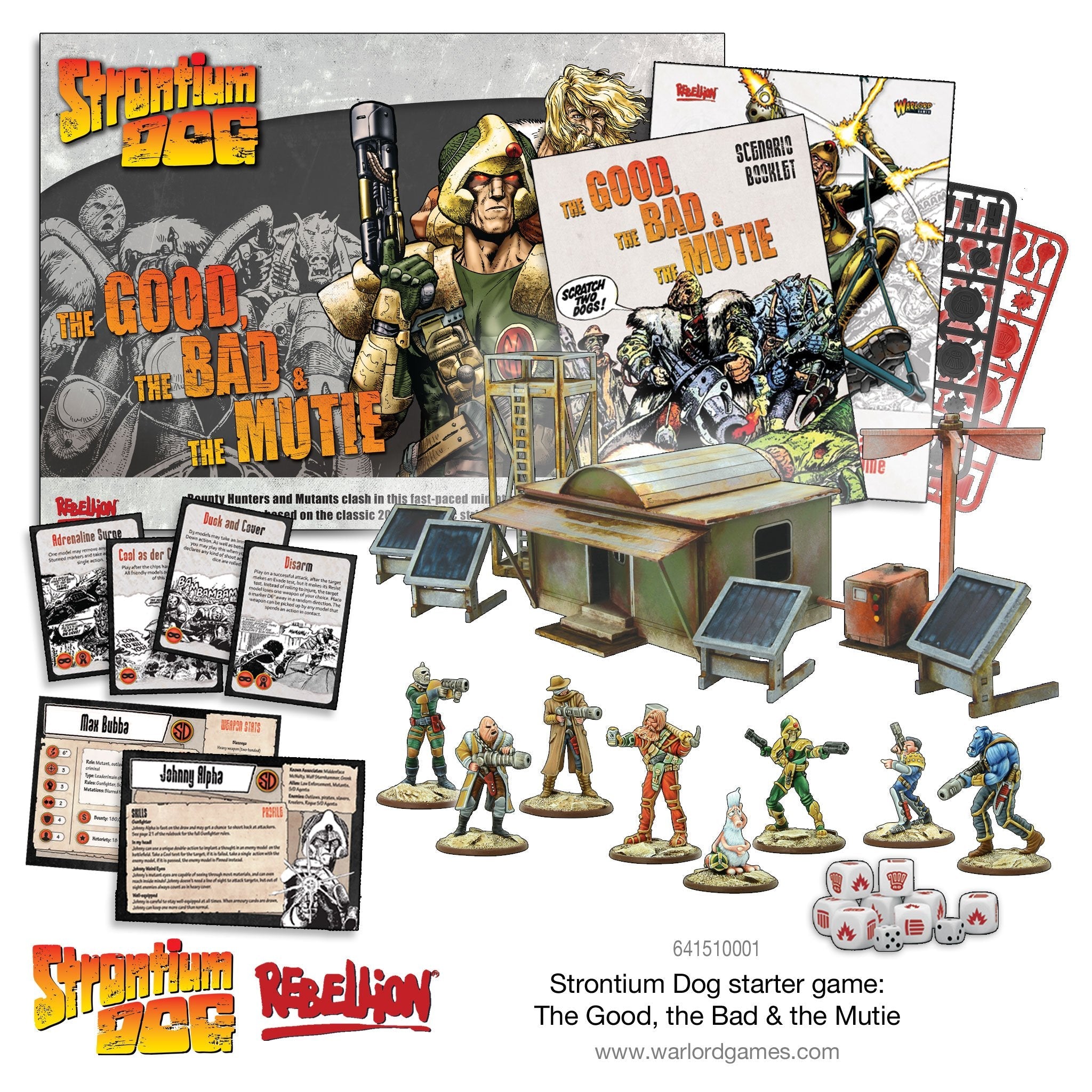 This starter game is based around the classic confrontation between mutant Search/Destroy agents (AKA Strontium Dogs) Johnny Alpha & Wulf Sternhammer and the infamous Max Bubba’s gang – a pivotal storyline within the pages of the galaxy’s greatest comic – 2000 AD.