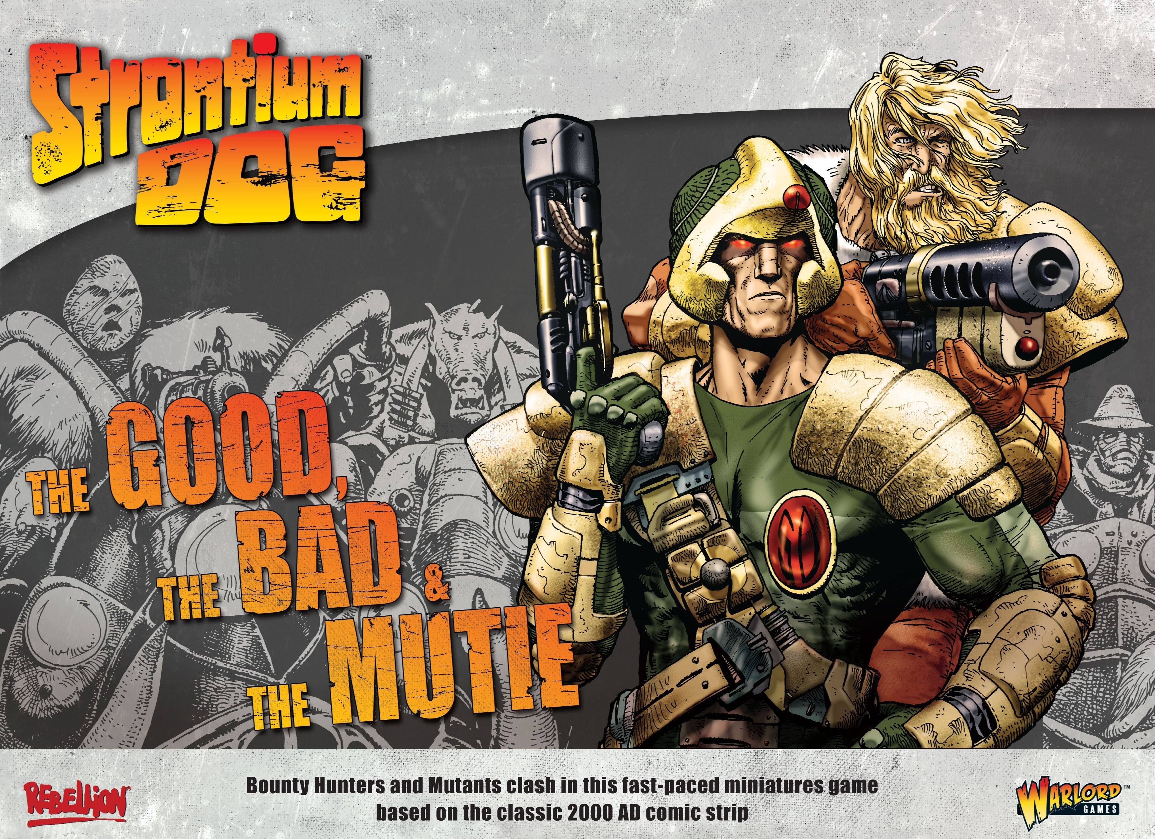 This fast-paced tabletop miniatures game allows two or more players to fight out scenes from the Strontium Dog universe defined by legendary comic creators John Wagner and Carlos Ezquerra. Players take control of a small team of bounty hunters or the outlaws, criminals and renegades they hunt in gun battles, chases and showdowns across the galaxy.